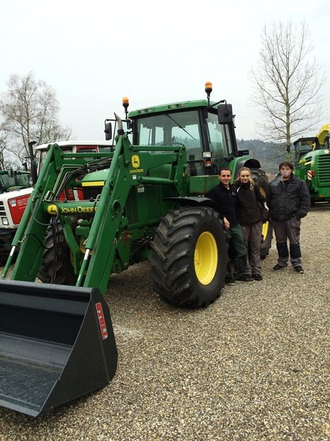 Lengnau/Selzach,09.April 2016 André Kiener mit Frau Spahni und Bruder übernehmen Ihren John Deere 6610 mit Frontlader Lengnau/Selzach,09.avril 2016 La famille Kiener prenne en possesion leur tracteur John Deere 6610 avec frontal